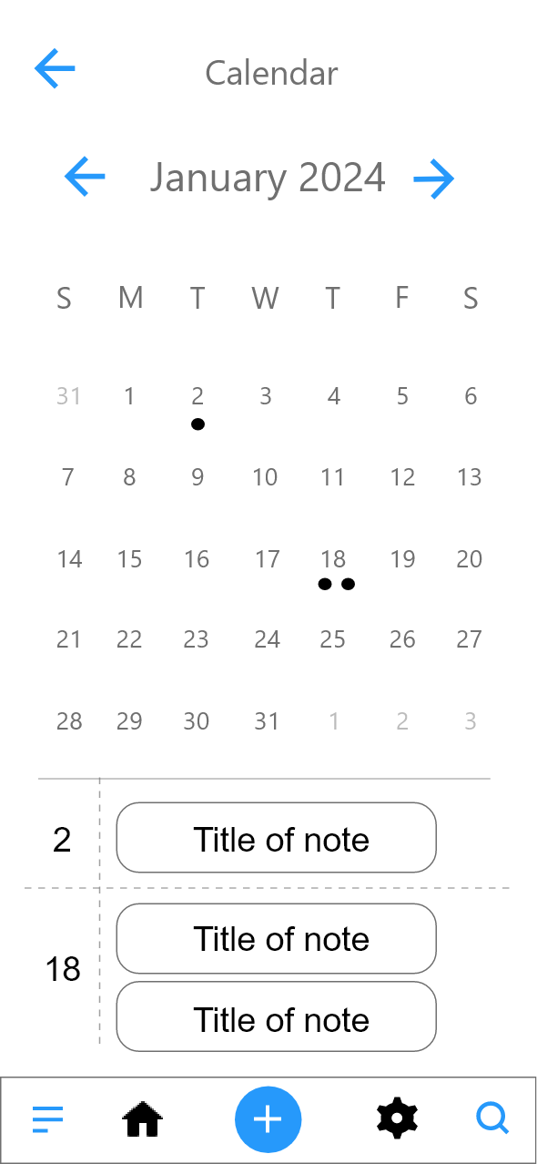 To identify pain points and enhance the user experience, I conducted testing with the client and other users on the initial drafts.Following the user testing, the key pain points identified were:“The list-view seen in the calendar page makes everything feel crowded. What about a separate screen for the list-view?"“Adding a calendar icon would make it easier access to the calendar page."“It would be helpful to have a reminder feature for important notes, so that I don't forgot key tasks for deadlines."