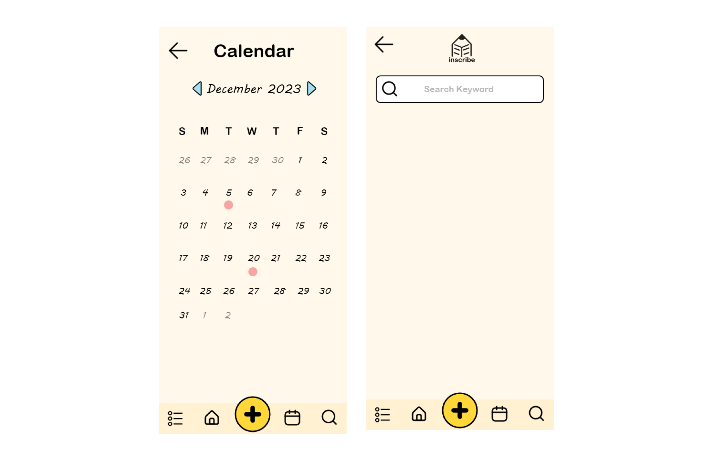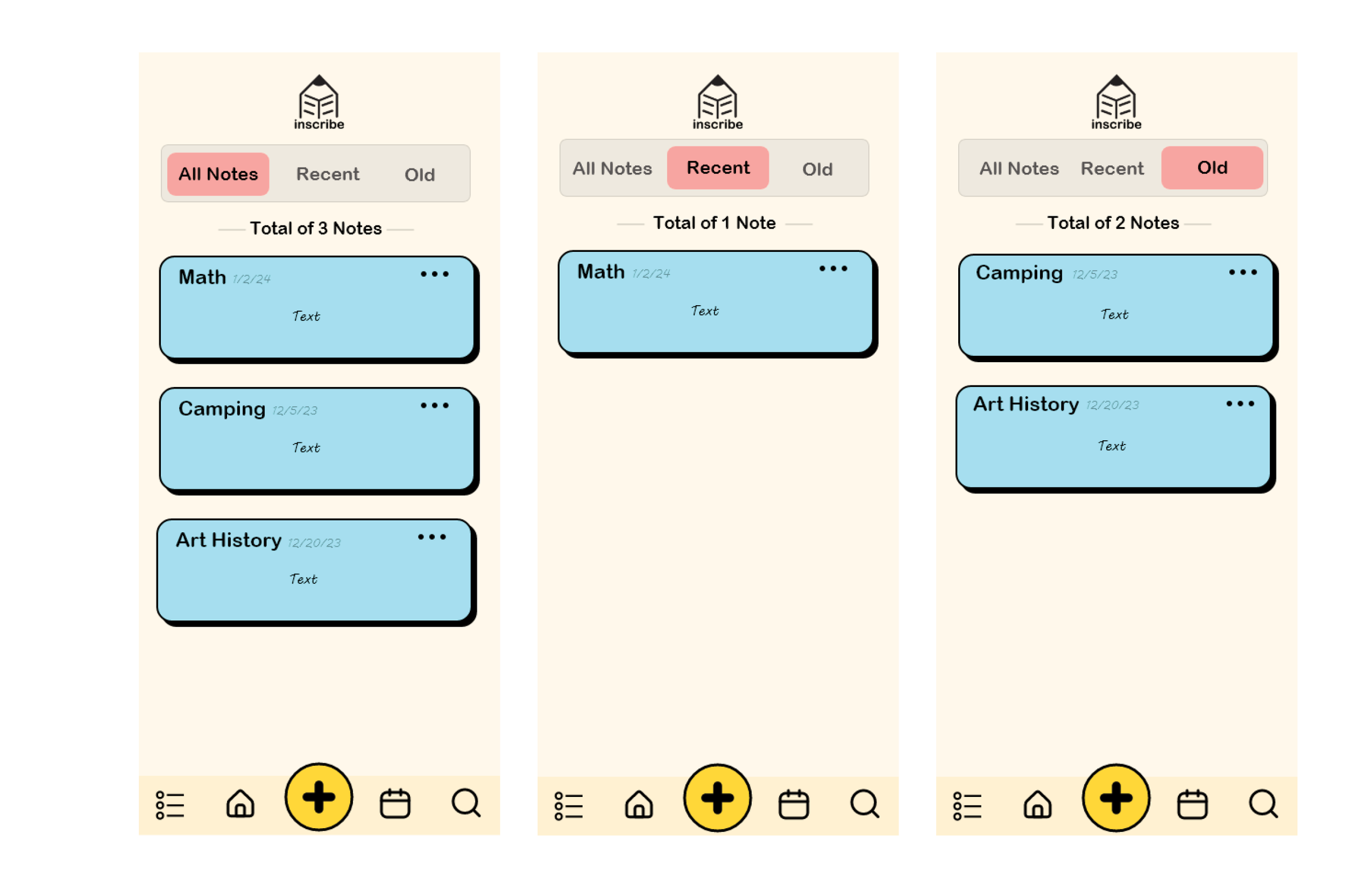 Problem Statement: The client needed a more efficient way to quickly locate the date and time of her notes to save time and streamline her workflow. Project Overview: To address this challenge, I designed a note-taking app that allows users to track and organize their notes effortlessly. Inscribe offers three unique features for finding and organizing notes: calendar view, search keyword, and list-view. The calendar view allows users to browse notes by date for easy chronological tracking. The search keyword function enables quick retrieval of specific notes through searching the notes names/titles. The list-view provides a structured, easy-to-scan format for better organization and accessibility.